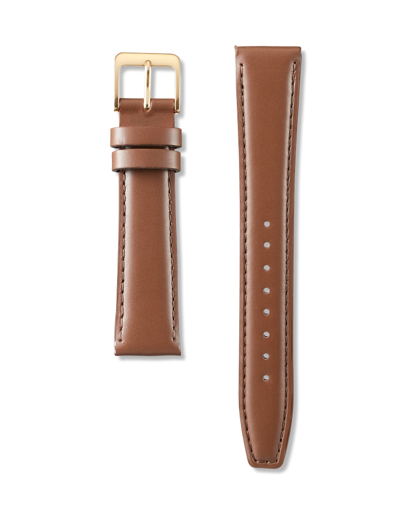 ツヤのある牛皮革スムースのバンドです。角ばった剣先が特徴です。付属部品や仕様については、改良等により予告なく変更する場合がございます。予めご了承ください。